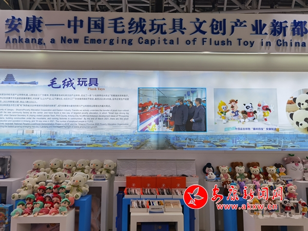 今年五月,第五屆絲綢之路國際博覽會(huì)暨中國東西部合作與投資貿(mào)易洽談會(huì)在西安舉行。走進(jìn)安康展館,毛絨玩具搭建的小山格外顯眼,十四運(yùn)吉祥物“秦嶺四寶”占據(jù)C位,展廳四周也用毛絨玩具娃娃進(jìn)行點(diǎn)綴。前來拍照、采購、咨詢的市民絡(luò)繹不絕。不少企業(yè)現(xiàn)場(chǎng)接到訂單。