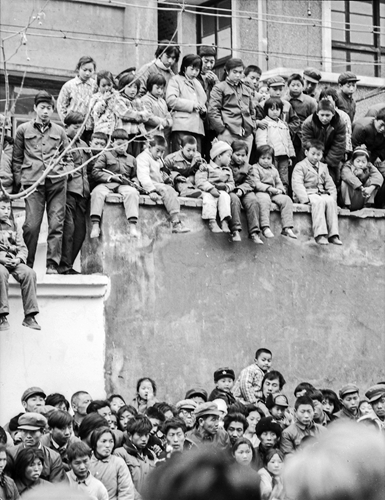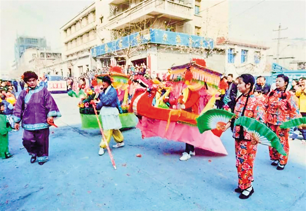 1982年的正月燈節(jié)時,安康城區(qū)的群眾在大北街道觀看燈節(jié)的表演(圖一)。1985年正月燈節(jié)時,安康城區(qū)的各單位也參與到花燈表演,歡天喜地地舞龍弄獅,熱熱鬧鬧地過大年(圖二)。2002年春節(jié),旬陽縣城的人們被熱鬧的彩船表演所吸引。其中“老搖婆”的扮演者朱漢春老人是當(dāng)?shù)赜忻奈乃噽酆谜?圖三)。