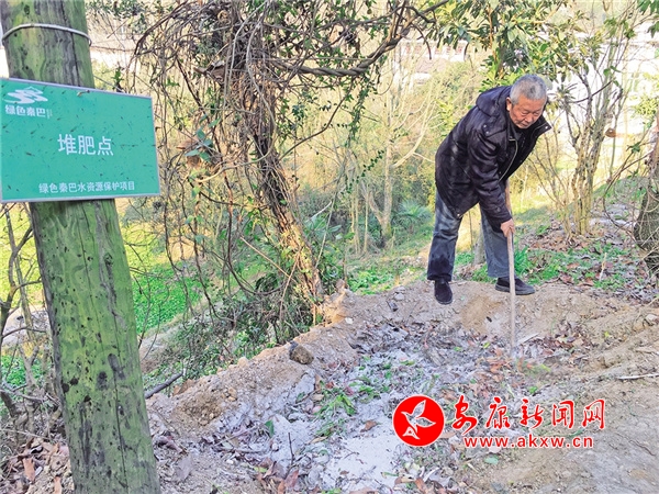 “自從開(kāi)始做小流域治理這個(gè)工作,綠色秦巴環(huán)保公益服務(wù)中心就鼓勵(lì)村民使用有機(jī)肥,人工除草,盡量不使用除蟲(chóng)劑以及除草劑,避免化肥、除蟲(chóng)劑和除草劑對(duì)水源造成潛在污染。”李輝智告訴記者,家里現(xiàn)在地里施肥全靠自己弄的農(nóng)家肥。說(shuō)著他拉起記者走到路邊,用鋤頭翻開(kāi)一個(gè)2米左右的土坑,坑里漚的正是他的堆肥。