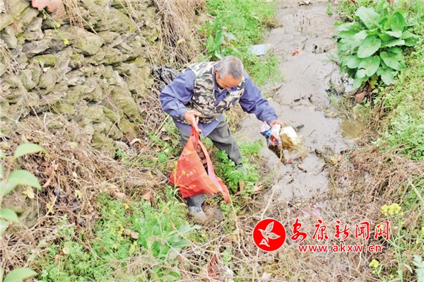 “我前兩天看溝里石頭堆中間有一件被丟掉的衣服,得趕緊撈出來(lái),可不敢等到春天雨水多了。”李輝智回頭對(duì)章彩云說(shuō),“那是的,現(xiàn)在溝里干凈著呢,我一會(huì)兒回家找個(gè)長(zhǎng)竹竿把衣服勾出來(lái),不能讓這些影響了水質(zhì)。”章彩云回應(yīng)道。