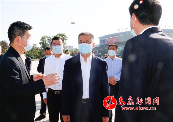 王浩(左三)一行在金州廣場核酸檢測采樣點檢查中心城區(qū)重點人群全員核酸檢測開展情況