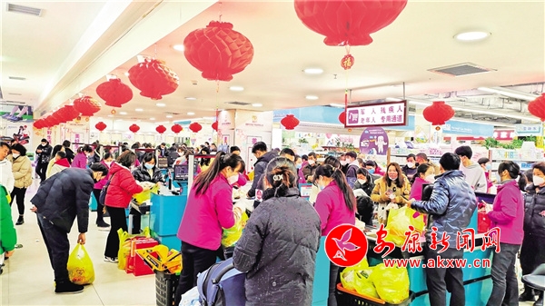 ②春節(jié)期間,平利縣超市從早到晚都是人山人海,采購(gòu)年貨的群眾把購(gòu)物區(qū)圍得水泄不通,肉食、蔬菜、水果、糧油等把購(gòu)物車(chē)裝得滿(mǎn)滿(mǎn)當(dāng)當(dāng),一種殷實(shí)、歡樂(lè)的春節(jié)氛圍在一張張笑臉中越發(fā)濃厚。