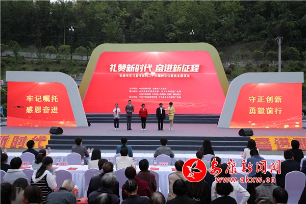 活動在開場歌舞《贊贊新時代》中拉開帷幕,通過情景劇《那一年總書記來到咱身邊》《共筑鄉(xiāng)村振興路》,詩朗誦《習近平的人民情懷》,歌伴舞《小康不小康關鍵看老鄉(xiāng)》《我們都是追夢人》等文藝節(jié)目,以及現(xiàn)場連線機關、企業(yè)、鎮(zhèn)村社區(qū)干部代表,表達感恩奮進之情,抒發(fā)對未來發(fā)展的信心;顒舆通過恒口毛絨玩具文創(chuàng)產(chǎn)業(yè)五大中心、平利蔣家坪茶山、紫陽半畝茶園、老縣鎮(zhèn)中心小學四個分會場連線,多維度展現(xiàn)三年來安康的巨大發(fā)展變化和在中國式現(xiàn)代化道路上聚力建設幸福安康的火熱實踐。