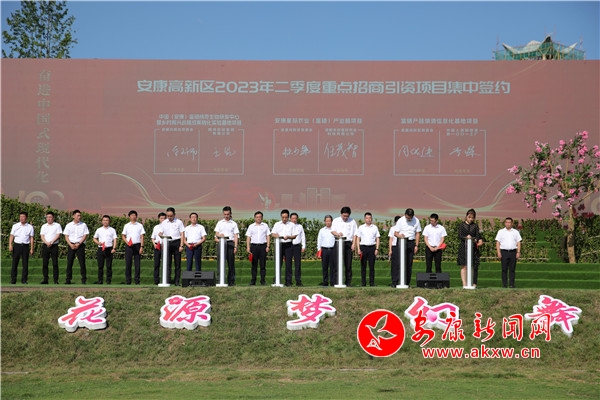 活動(dòng)現(xiàn)場(chǎng),還組織開展了納新黨員集中宣誓和老黨員重溫入黨誓詞儀式;為“光榮在黨50年”的老黨員代表頒發(fā)了紀(jì)念章;為安康高新區(qū)“學(xué)思踐悟新思想、干闖當(dāng)頭譜新篇”知識(shí)競(jìng)賽獲獎(jiǎng)?wù)哳C獎(jiǎng)。同時(shí),還舉行了“安康高新區(qū)2023年二季度重點(diǎn)招商引資項(xiàng)目集中簽約活動(dòng)”,總投資24.7億元的9個(gè)產(chǎn)業(yè)項(xiàng)目在現(xiàn)場(chǎng)領(lǐng)導(dǎo)、嘉賓的共同見證下進(jìn)行了集中簽約。