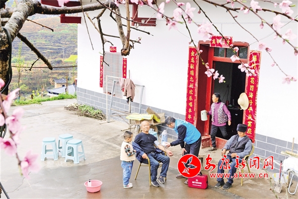 嵐皋縣南宮山鎮(zhèn)雙嶺村村醫(yī)鄧作朝入戶巡診。 郭圣杰 攝