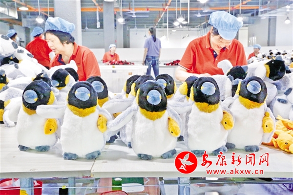 6月的驕陽(yáng)曬得大地一片火熱,偉高仿真毛絨玩具廠生產(chǎn)車(chē)間內(nèi),也是一派趕訂單、忙生產(chǎn)的熱鬧場(chǎng)景。一臺(tái)臺(tái)全自動(dòng)繡花機(jī)和全自動(dòng)激光切割機(jī)飛速運(yùn)轉(zhuǎn),百余名工人巧手翻飛,一個(gè)個(gè)做工精美的仿真毛絨玩具快速?gòu)?ldquo;流水線”誕生。公司負(fù)責(zé)人龍武臉上掛滿笑容:“我們公司都是訂單式生產(chǎn),現(xiàn)在訂單量很充足,已經(jīng)排到8月份了。產(chǎn)品銷(xiāo)售主要是以歐美為主,覆蓋全球40多個(gè)國(guó)家和地區(qū)。”