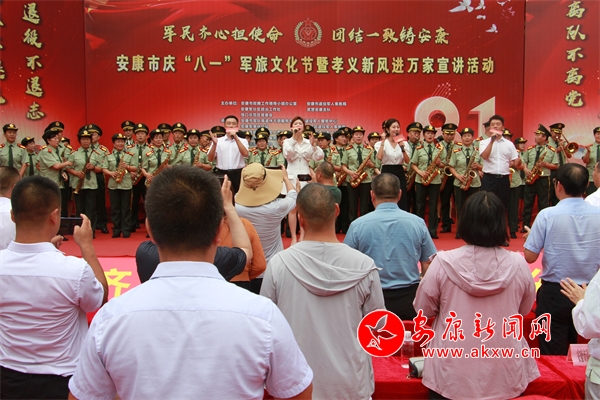 本網(wǎng)訊(記者 黃慧慧 通訊員 王典根)軍愛民,民擁軍,軍民融合情誼深。7月27日,由安康市雙擁工作領(lǐng)導(dǎo)小組辦公室、安康市退役軍人事務(wù)局、安康軍分區(qū)政治工作處、武警安康支隊(duì)、恒口示范區(qū)管委會(huì)共同主辦,以“軍民齊心擔(dān)使命 團(tuán)結(jié)一致鑄安康”為主題的安康市慶“八一”軍旅文化節(jié)暨孝義新風(fēng)進(jìn)萬(wàn)家宣講活動(dòng)在恒口示范區(qū)南月村舉行,軍地領(lǐng)導(dǎo)、部隊(duì)官兵、退役軍人、現(xiàn)役軍人家屬及群眾代表共300余人參加活動(dòng)。