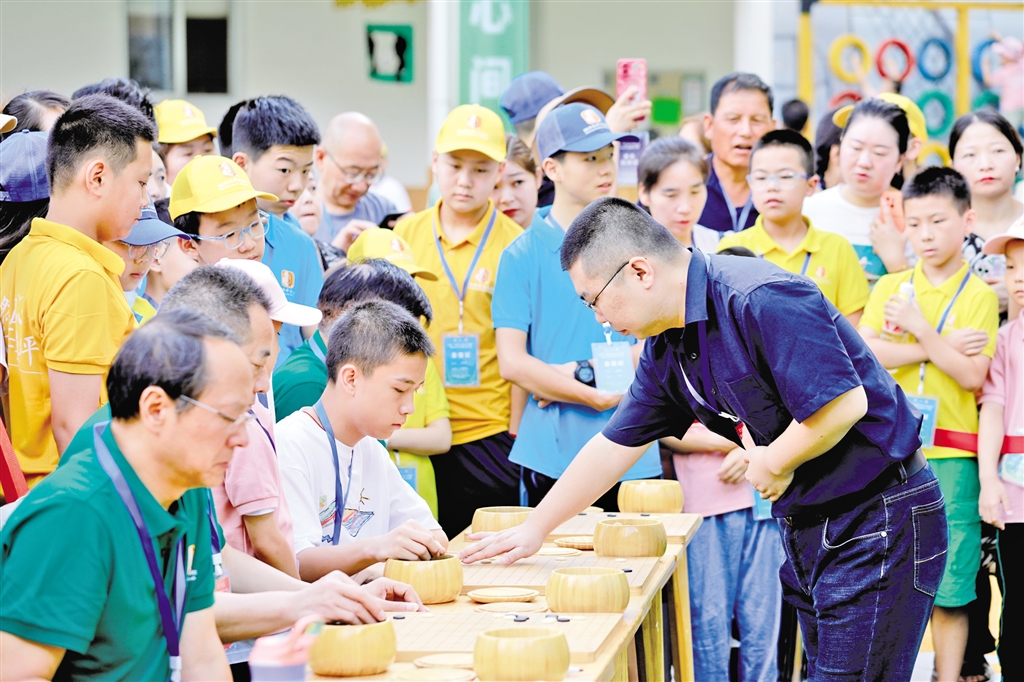 世界圍棋冠軍職業(yè)九段樸文垚與教練員、棋手對(duì)弈
