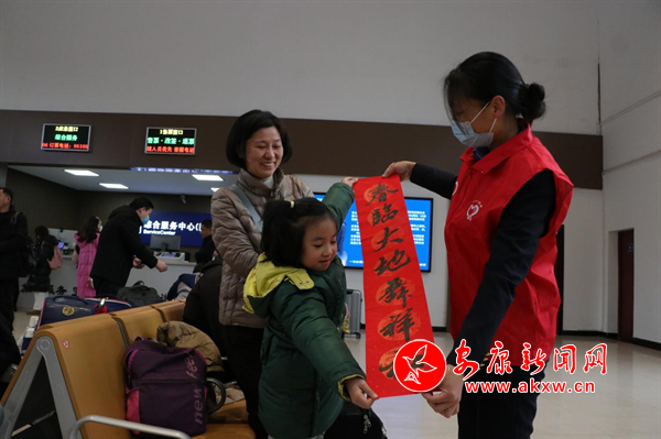 1月14日,春運(yùn)首日,西安局集團(tuán)公司安康東站在旬陽(yáng)站開(kāi)展“溫情承諾 溫馨出行”主題活動(dòng)。候車室內(nèi),紅色的窗花光彩奪目,剛?cè)岵?jì)的太極拳、歡快的歌舞、動(dòng)情的朗誦、寫(xiě)春聯(lián)等一系列活動(dòng)精彩紛呈,不少旅客在展板前拍照打卡,積極上臺(tái)表演才藝,處處洋溢著喜慶的氛圍。一些志愿者還為出行旅客送出中國(guó)結(jié)、春聯(lián)和福字,幫助旅客搬運(yùn)行李。今年春運(yùn),安康東站將針對(duì)秦巴山區(qū)旅客出行需求,組建“太極韻 溫馨行”黨員服務(wù)隊(duì),做好旅客服務(wù)、疑難解答等工作,進(jìn)一步提升服務(wù)品質(zhì),溫暖旅客出行路。(通訊員 孟繁璐)