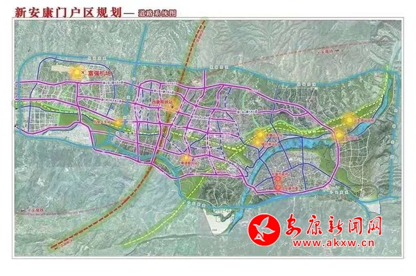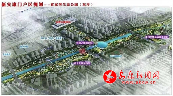 依據(jù)總體規(guī)劃,擬將安康高新區(qū)高新大道以西、北環(huán)快速干道以南、月河流域以北、寨河梁以東區(qū)域的60平方公里,規(guī)劃為新安康門戶區(qū)。在空間布局上,以高鐵安康西站為核心,以新時(shí)代大道、新安康大道、安康大道、創(chuàng)新路4條東西向城市主干道和高新大道、高新七路、高新十路、高新十二路、冉河西路、國賓大道6條南北向城市主干道為軸線,規(guī)劃布局新經(jīng)濟(jì)引領(lǐng)區(qū)、臨空經(jīng)濟(jì)區(qū)、新行政中心區(qū)、現(xiàn)代服務(wù)聚集區(qū)、安康特色產(chǎn)業(yè)區(qū),以此打造“五大”門戶。