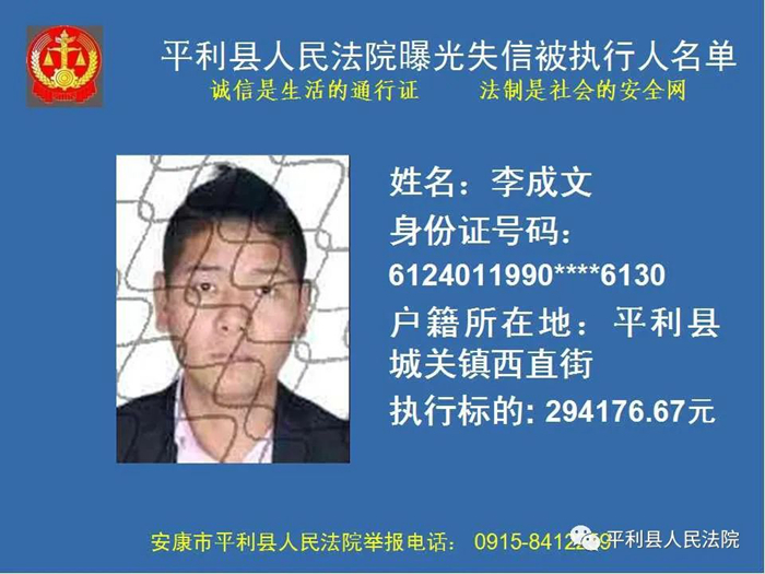 曝光失信 | 平利縣人民法院曝光失信被執(zhí)行人名單(2022年第一、二季度)