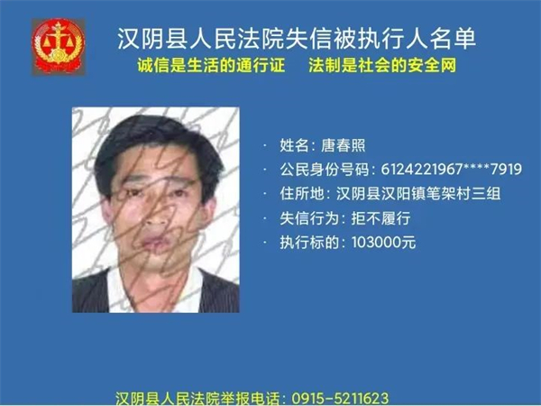 曝光失信 | 漢陰法院失信被執(zhí)行人曝光名單 (2022年第二批)