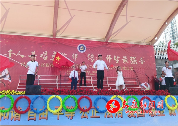 本網(wǎng)訊(實習(xí)記者 馬娟)9月30日下午,在新中國成立70周年華誕即將到來之際,漢濱初中高新校區(qū)舉行慶祝新中國成立70周年千人合唱紅歌比賽活動。以嘹亮的歌聲唱響奮進的頌歌,用誠摯的熱情為祖國送上祝福。