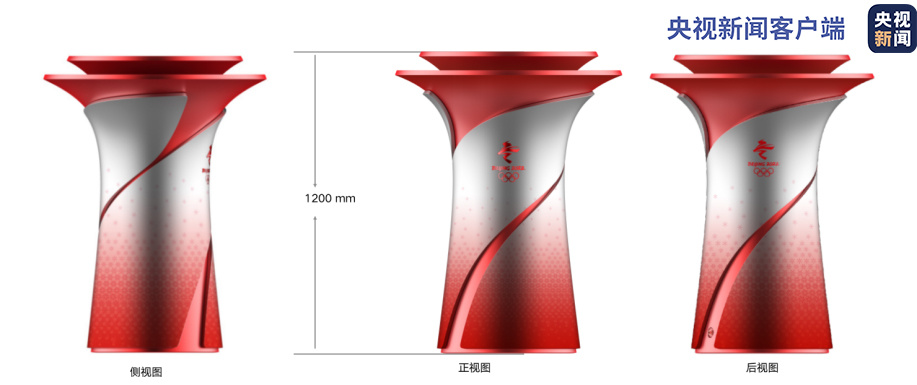北京冬奧會儀式火種臺以“承天載物”為設(shè)計理念,創(chuàng)意靈感來自中國傳統(tǒng)青銅禮器——尊,造型風格與火炬、火種燈和諧一致。儀式火種臺采用了尊的曲線造型,基座沉穩(wěn),象征“地載萬物”。頂部舒展開闊,寓意著迎接純潔的奧林匹克火種。祥云紋路由下而上漸化為雪花,象征了“雙奧之城”的精神傳承。紅色絲帶飄逸飛舞、環(huán)繞向上,與火炬設(shè)計和諧統(tǒng)一。紅銀交映的色彩,象征了傳統(tǒng)與現(xiàn)代、科技與激情的融合。