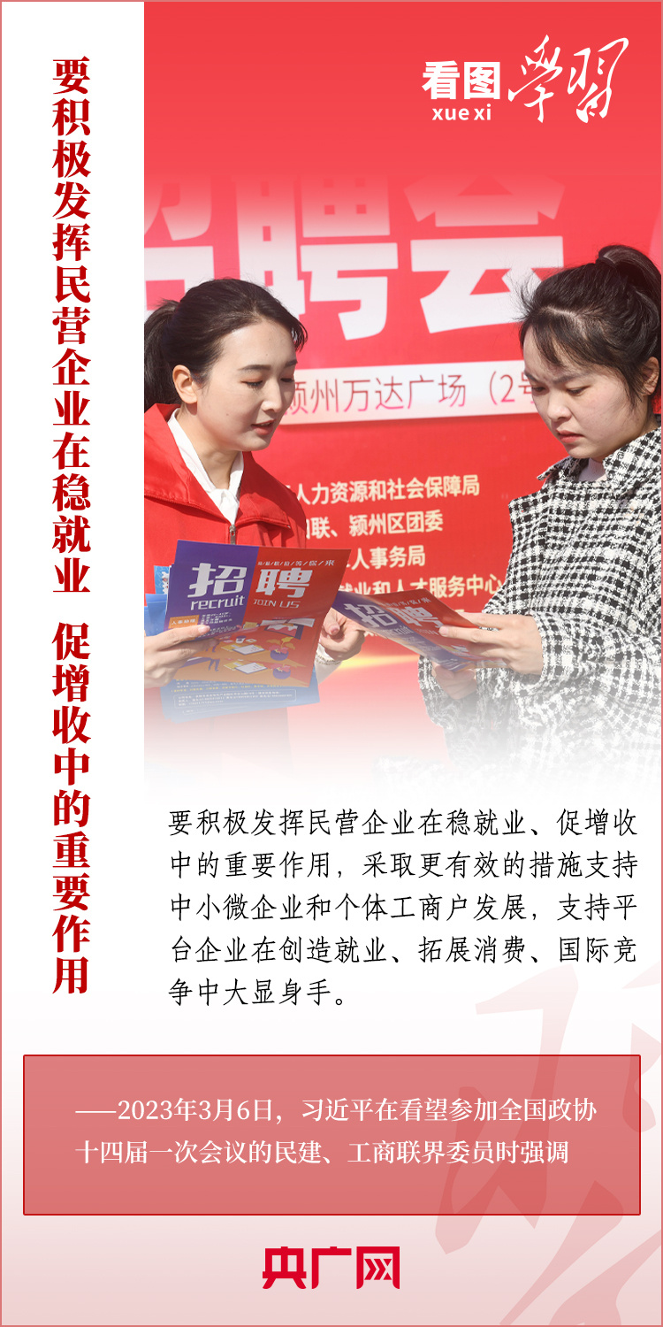 3月6日下午,習(xí)近平總書記看望參加全國政協(xié)十四屆一次會(huì)議的民建、工商聯(lián)界委員,并參加聯(lián)組會(huì),聽取意見和建議。總書記強(qiáng)調(diào),黨中央始終堅(jiān)持“兩個(gè)毫不動(dòng)搖”“三個(gè)沒有變”,始終把民營企業(yè)和民營企業(yè)家當(dāng)作自己人。要引導(dǎo)民營企業(yè)和民營企業(yè)家正確理解黨中央方針政策,增強(qiáng)信心、輕裝上陣、大膽發(fā)展,實(shí)現(xiàn)民營經(jīng)濟(jì)健康發(fā)展、高質(zhì)量發(fā)展。一起來學(xué)習(xí)!