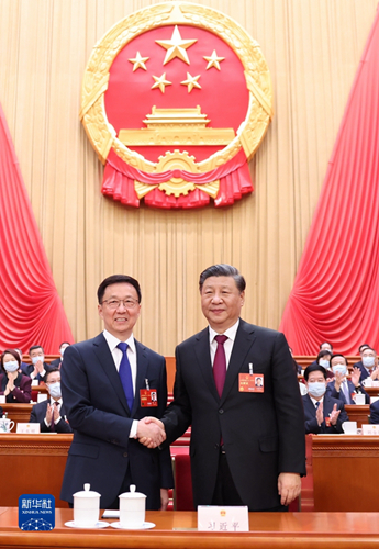 會議同時選舉趙樂際為第十四屆全國人民代表大會常務委員會委員長,選舉韓正為中華人民共和國副主席。