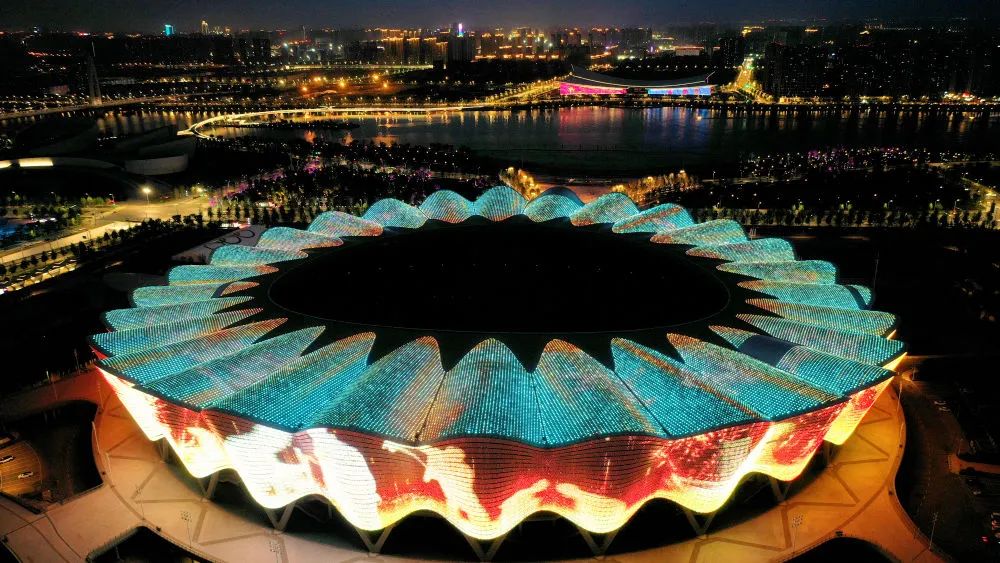 ↑位于西安國(guó)際港務(wù)區(qū)的西安奧體中心(4月26日攝,無(wú)人機(jī)照片)。新華社記者 劉瀟 攝