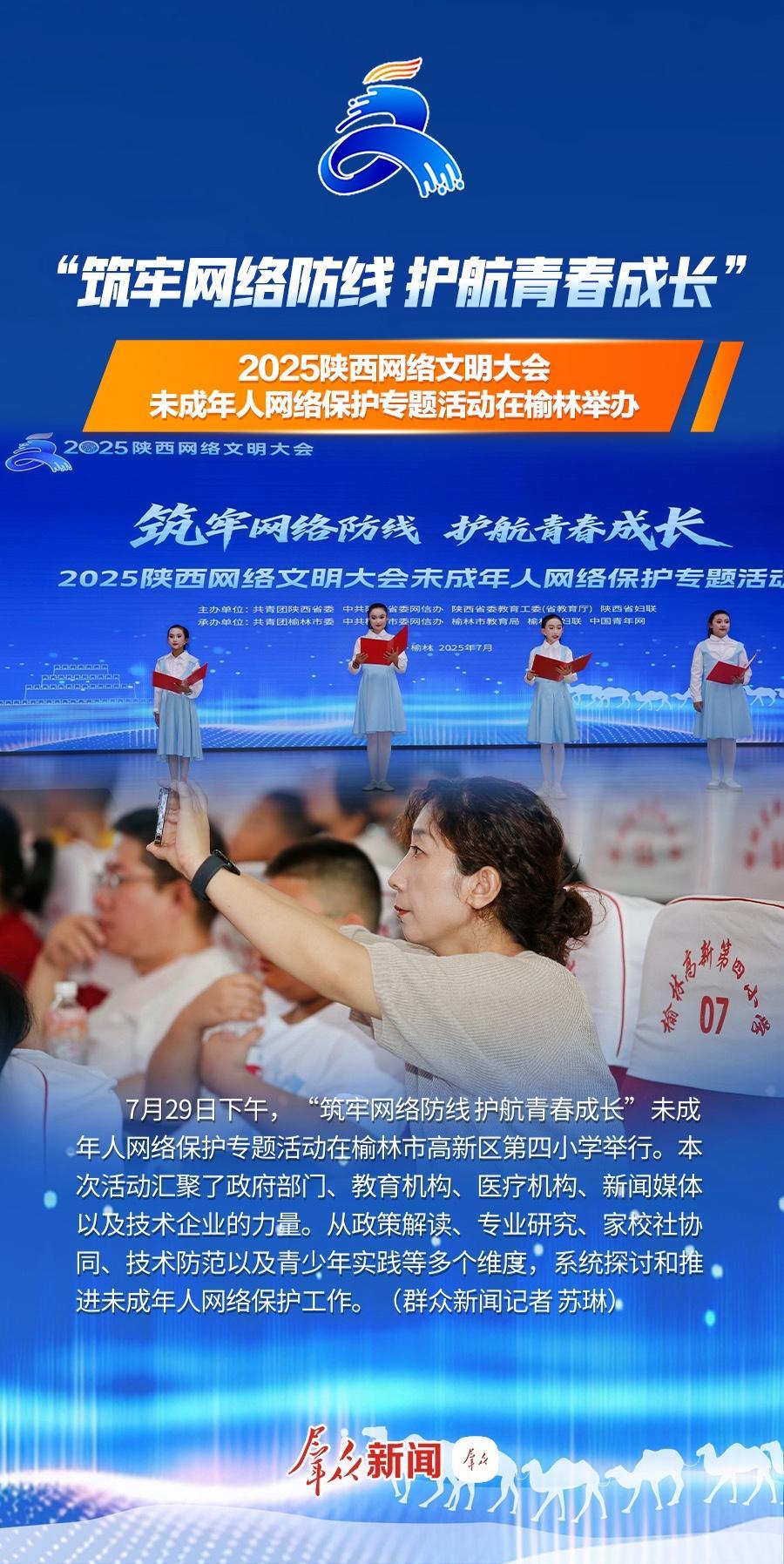7月29日下午,“筑牢網(wǎng)絡(luò)防線 護(hù)航青春成長”2025陜西網(wǎng)絡(luò)文明大會未成年人網(wǎng)絡(luò)保護(hù)專題活動在榆林高新第四小學(xué)舉辦。