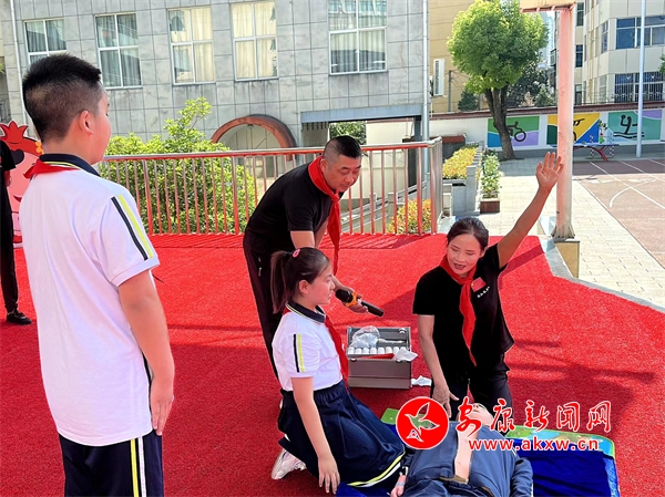 隨后,開展了水中憋氣體驗(yàn)和模擬心肺復(fù)蘇救護(hù)演示,現(xiàn)場互動(dòng)中,同學(xué)們踴躍上臺(tái)體驗(yàn)水中憋氣,交流溺水感受,進(jìn)一步增強(qiáng)學(xué)生防溺水的自覺意識(shí)。模擬心肺復(fù)蘇救護(hù)演示培訓(xùn)現(xiàn)場利用模擬人教具進(jìn)行了心肺復(fù)蘇救護(hù)全程的示范和演練,使師生們正確掌握了救護(hù)要領(lǐng)。