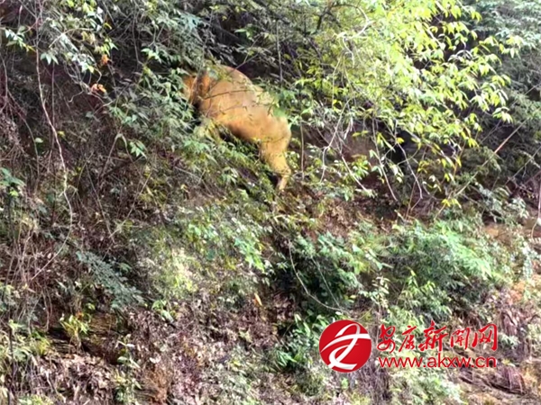 “猛然一看像只羊,仔細端詳又不對,那腳長得跟牛蹄似的。”回憶起當時的場景,王開濤仍難掩興奮。消息一經(jīng)傳開,鎮(zhèn)領導高度重視,即刻組織宣傳、林業(yè)干部趕赴現(xiàn)場。據(jù)王開濤介紹,6月27日上午7時40分許,他正驅(qū)車前往15組組長家,準備帶領護林員開展巡山工作。行至土房溝路段時,路邊護欄外一個形似“羊頭”的身影突然闖入眼簾。王開濤急忙剎車,就在停車的剎那,只見這個“羊頭牛腳”的神秘動物利落地躍過護欄,“咚”地落在路面,還沖著他發(fā)出一聲低沉的“嗷”叫,緊接著身形一閃,以敏捷的身姿竄上溝崖。電光石火間,王開濤迅速掏出手機,接連按下快門,成功抓拍下3張珍貴畫面。