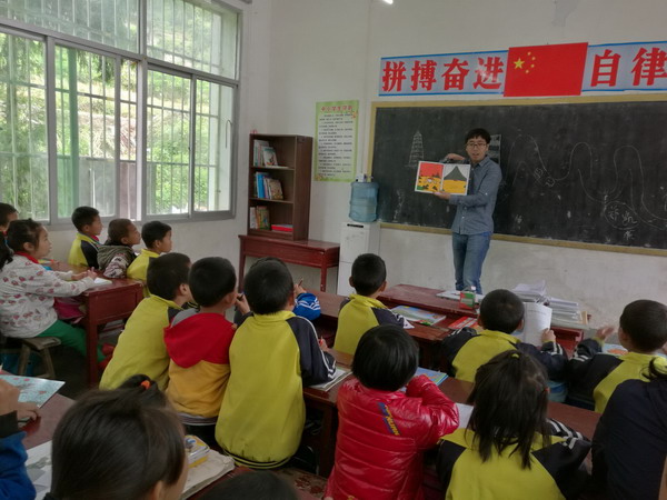 愛心人士卸完圖書后,走進教室與孩子們互動,以閱讀課的形式一起分享書中的快樂。