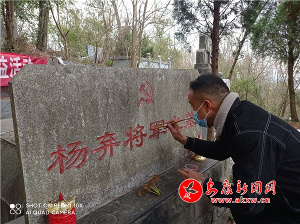 活動現(xiàn)場,該鎮(zhèn)10余名書法志愿者們向烈士鞠躬后,便小心翼翼地把墓碑上面的灰塵刷去,開始嚴肅認真地一筆一劃為烈士墓碑描摹碑文。每一筆,都刻畫了志愿者們對先烈們的沉痛追思;每一畫,都描摹著對新生活的無限感激。經(jīng)過3個多小時的努力,40余座革命烈士墓碑的字跡煥然一新,在陽光的照耀下,顯得格外清新醒目,志愿者們露出了欣慰的表情。