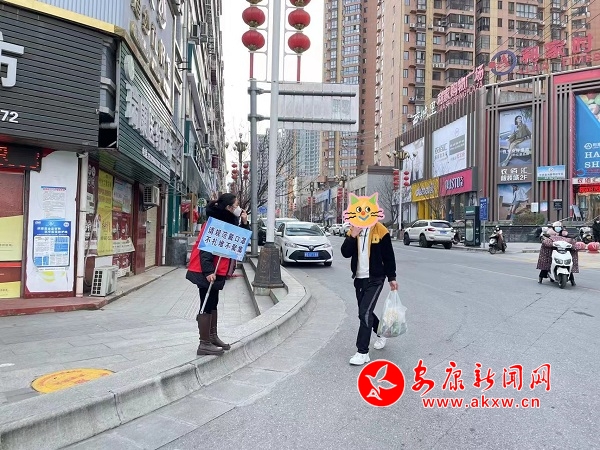 “您好,我這里有口罩給您,請你戴好口罩。”“請把口罩戴好,把鼻子蓋住。”12月7日下午,縣委宣傳部6名干部身穿紅馬甲前往負責包聯(lián)的小區(qū),向住戶宣傳規(guī)范佩戴口罩知識。在漢陰大街小巷,隨處可見身穿紅馬甲的志愿者們,他們有的手拿小喇叭,有的手持“戴口罩 不扎堆”“請規(guī)范佩戴口罩”等提示牌,勸導(dǎo)路上的民眾規(guī)范佩戴口罩。