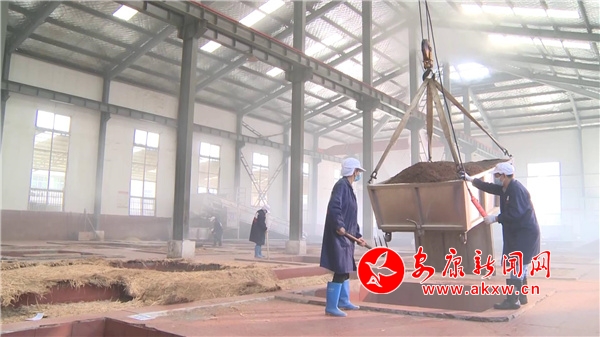 在漢陰縣雙乳鎮(zhèn)三同村頤品莊園酒廠標(biāo)準(zhǔn)化廠房車間里,工人們來回穿梭,在各自崗位上抓生產(chǎn)、趕進(jìn)度。釀酒車間里,新出爐的酒糟熱氣騰騰,工人們快速將其攤晾,冷卻后又開始揮鏟拌曲,進(jìn)入下一輪的裝窖發(fā)酵;蒸鍋旁,工人鉚足干勁,一層一層均勻加料上甑,熟練地進(jìn)行各項(xiàng)工序。