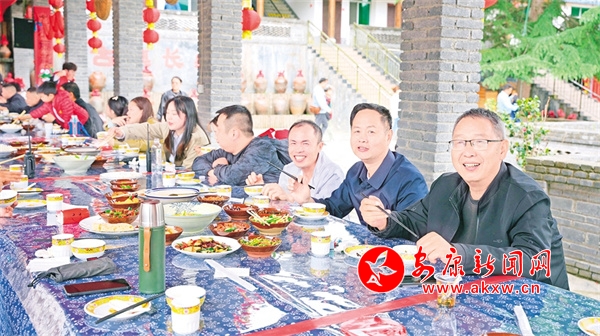 “我現(xiàn)在是在雙河口古鎮(zhèn)的長桌宴現(xiàn)場,在我身后的長桌上已經擺滿了酸辣茴香小魚、漢陰豆腐干等10余種特色菜肴,游客們圍桌而坐、品嘗美食、好不熱鬧。”5月2日,在雙河口古鎮(zhèn)“五一”旅游季期間,漢陰縣融媒體中心記者介紹著長桌宴現(xiàn)場盛況。