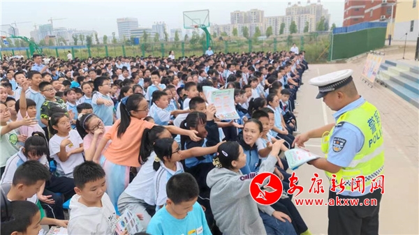 活動中,大隊民警結(jié)合轄區(qū)實際情況,首先通報了暑假期間全區(qū)道路交通安全,特別是涉及中小學生的典型事故案例,以身邊的事故教育身邊的人,以案說法、以案為鑒,希望同學們從中汲取深刻教訓,遠離交通事故危害。其次,民警針對中小學生上下學出行特點,以“守法規(guī)知禮讓、安全文明出行”為主題,通過擺放宣傳展板、發(fā)放宣傳資料、以及互動問答等形式,圍繞學生正確走路、文明乘車、安全騎車幾個方面,向同學們宣傳講解日常交通安全常識,生活中出行應當注意的行為規(guī)范,發(fā)生交通事故后如何求助,教育引導同學們認真遵守道路交通安全法規(guī),牢固樹立交通安全文明意識,做到知危險會避險,守法規(guī)知禮讓,真正提高安全防范意識和自我保護能力。