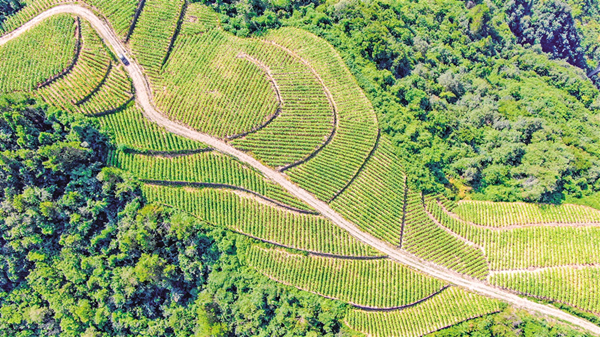 無(wú)奈,黃德培雇來(lái)了一臺(tái)挖掘機(jī)將通往坡上的道路平整拓寬,并在路邊臨近坡下一側(cè)用竹竿搭起護(hù)欄,每天清晨趕著牛群在“專線”上鍛煉。一段時(shí)間過(guò)后,這群牛逐漸熟悉了路線,膽量也慢慢大了起來(lái),有時(shí)還能和本地的黃牛一樣,撒歡在路上小跑一段,然后直接上坡覓食吃草。