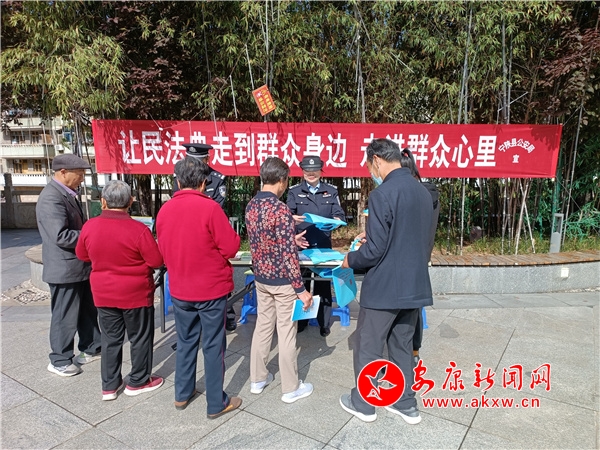 在縣政府廣場活動現(xiàn)場,通過懸掛橫幅、發(fā)放各類宣傳書籍、法治宣傳品等普法資料、設立法律咨詢服務臺等形式向群眾宣傳《中華人民共和國民法典》《信訪工作條例》和《反電信網(wǎng)絡詐騙法》。民警結(jié)合群眾普遍關(guān)心的婚姻家庭、遺囑繼承、勞務糾紛、高空拋物、財產(chǎn)保護、隱私保護等熱點難點法律問題,借助群眾身邊日常小事、糾紛案例,進行了耐心講解和交流,讓法律真正深入人心、為民所用,解民憂、紓民困。
