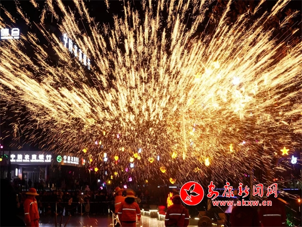 19:30,在寧陜縣中心廣場,伴隨著鏗鏘有力的鑼鼓聲,寧陜縣傳統(tǒng)文化活動表演開始。舞獅、陜南花鼓、民間小調等傳統(tǒng)民俗節(jié)目輪番上演,為現(xiàn)場群眾送去了豐富的民俗文化大餐。而在傳統(tǒng)文化表演中,最吸引人的是打鐵花,只見表演者將提前加熱好的鐵水猛力擊打,絢爛的鐵花在空中綻放,放眼望去,一串串耀眼的鐵花在空中散開,猶如煙花綻放,又似流星滑落,令人驚艷。