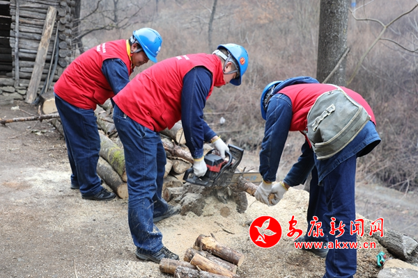 “是這個燈不亮嗎?除了這個燈之外,還有沒有其他的故障情況。”3月4日上午,廣貨街供電所工作人員一來到獨居老人史進來的家中,就對用電設備、線路的具體情況進行詢問、了解。前夕,寧陜公司廣貨街供電所對沙溝村用電客戶進行整體摸排檢查,針對群眾存在的用電問題,組織供電所工作人員進行集中走訪解決。工作人員從中了解到,史爺爺常年獨自居住,冬天基本靠砍柴生火取暖。在了解了這一情況后,工作人員立刻行動起來,對史爺爺家中用電設備、開關以及線路進行檢修、更換,并幫助史爺爺打掃房間。來到后院,映入眼簾的是一堆加工到一半的木柴,“史爺爺,這些柴我們幫您劈吧。”說罷,工作人員拿起地上的電鋸,齊心協(xié)力幫助史爺爺將剩下的木材劈好,并挪到遠離灶口的安全位置,以免發(fā)生火災。