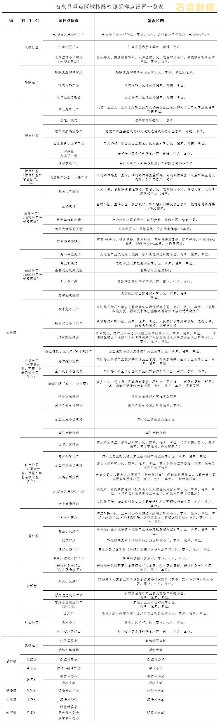 附件:石泉縣重點(diǎn)區(qū)域核酸檢測(cè)采樣點(diǎn)一覽表
