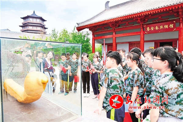 作為西北蠶桑第一大縣,石泉縣已經(jīng)形成了從制種、養(yǎng)蠶到繅絲、織綢的蠶桑全產(chǎn)業(yè)鏈,加上國寶“鎏金銅蠶”出土地加持,聲名遠播。依托悠久的興桑養(yǎng)蠶歷史和金蠶文化,石泉縣于2020年啟動池河金蠶小鎮(zhèn)研學(xué)基地建設(shè),以明星村、五愛村、池河集鎮(zhèn)為核心,建成金蠶之鄉(xiāng)展覽館、鎏金銅蠶文創(chuàng)產(chǎn)品展銷中心、桑棲云村研學(xué)青年旅舍、鎏金銅蠶文化公園、醉美桑海博覽園、荷塘月色體驗區(qū)等項目,圍繞“桑、蠶、絲、史、勞、游”六大主題,開發(fā)研學(xué)系列課程52項,被命名為陜西省中小學(xué)生研學(xué)實踐教育基地。