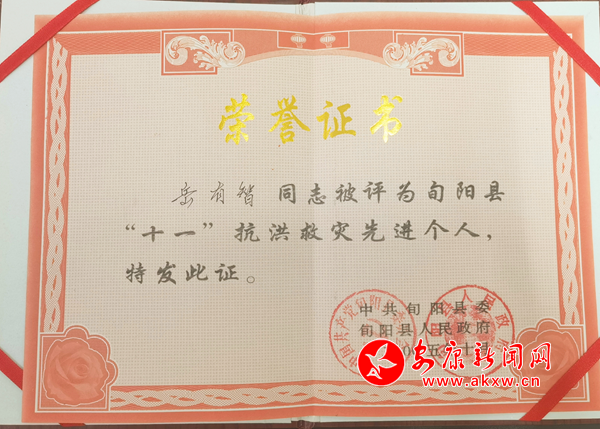 而岳有智也用自己的實際行動真正詮釋了軍人“退伍不褪色”的內(nèi)涵,被組織表彰為“抗洪救災(zāi)先進個人”。