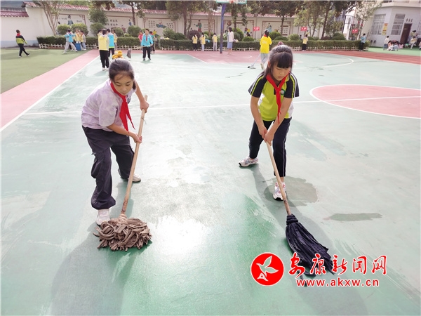 師生們辛勤勞動的忙碌身影活躍在校園里的各個角落,大家手拿掃帚、拖把、抹布等清潔工具,分工明確地對部室、操場、樓道、柵欄等進行了徹底清掃,教師隨班參加勞動,經過大家共同努力,學校一塵不染、窗明幾凈,整個校園煥然一新。衛(wèi)生大掃除結束后,學校以此為契機對學生開展了勞動教育活動,學生們分享和交流了暑假勞動趣事和感受。