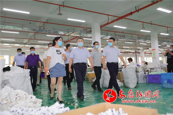市長武文罡(右三)在五里工業(yè)集中區(qū)新樂祥襪業(yè)調(diào)研