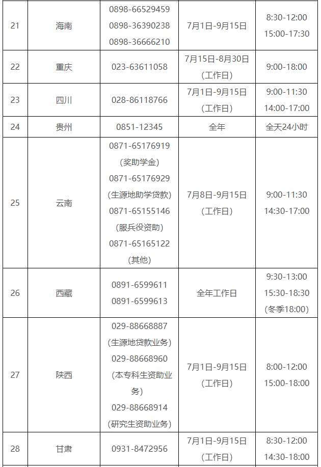 各省(自治區(qū)、直轄市)和中央部門所屬高校同步開通了熱線電話,電話號碼與開通時間可查看匯總表。