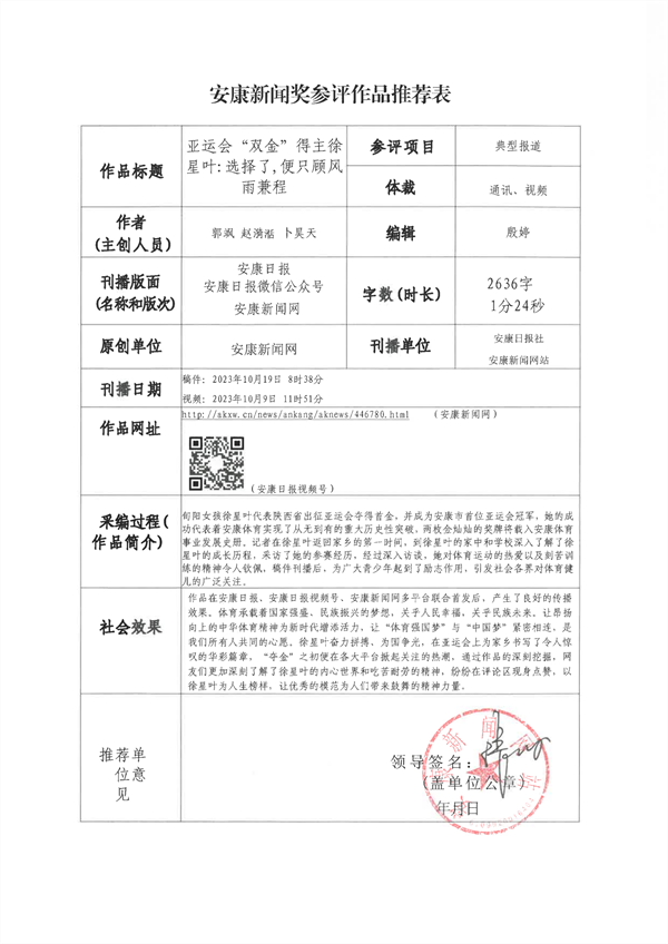 經(jīng)過編委會推薦、社黨委研究決定,擬推薦以下13件新聞作品參評2023年度“安康新聞獎”。公示時間從2024年3月25日至2024年3月29日,公示期為5個工作日。如有不同意見,請向安康日報(bào)社機(jī)關(guān)紀(jì)委、新聞管理部反映。nyB安康新聞網(wǎng)