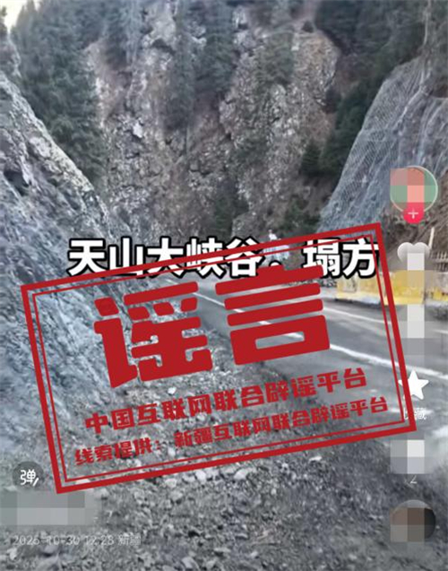 真相:近日,有網(wǎng)民在網(wǎng)絡平臺發(fā)布視頻并配文稱“天山大峽谷塌方”,引發(fā)關注。經(jīng)烏魯木齊市南山景區(qū)管理委員會核實,該情況不屬實,相關信息系謠言。網(wǎng)傳圖片實為2025年10月24日,烏魯木齊中佳勘察設計有限公司在天山大峽谷景區(qū)進入山溝1.3公里處進行山體排險作業(yè)時的畫面。(來源:“新疆網(wǎng)絡辟謠”微信公眾號)