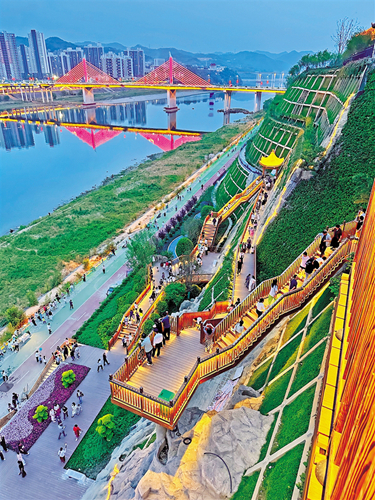 走進(jìn)這座煥然一新的山體公園,230米鋼結(jié)構(gòu)棧道蜿蜒盤旋,12個文化景觀節(jié)點(diǎn)錯落有致。項目總建設(shè)面積約2.3萬平方米,秉持“輕量化改造”理念,在消除地質(zhì)隱患的同時,依托崖壁天然走勢,打造出“凌空探江—崖壁攬勝—谷底尋幽”的立體游覽動線。通過綠化覆綠、仿古建亭、智慧霧森等技術(shù),實(shí)現(xiàn)“一步一景、移步換景”的沉浸式體驗。
