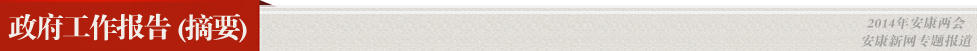 市長(zhǎng)徐啟方所作《政府工作報(bào)告》(摘要) 2月26日,在安康市第三屆人民代表大會(huì)第五次會(huì)議上,市長(zhǎng)徐啟方所作的《政府工作報(bào)告》對(duì)2013年經(jīng)濟(jì)社會(huì)發(fā)展進(jìn)行了全面回顧,對(duì)2014年的工作進(jìn)行了安排部署,這對(duì)我市今后的發(fā)展具有十分重要的意義。安康新網(wǎng)特摘錄其中要點(diǎn),以利全市上下學(xué)習(xí)領(lǐng)會(huì),統(tǒng)一認(rèn)識(shí),認(rèn)真貫徹落實(shí),加快美麗富裕新安康建設(shè)步伐。[詳細(xì)] |