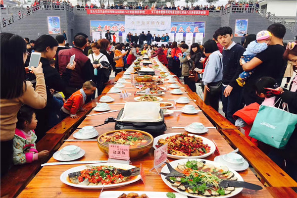 游古鎮(zhèn)、觀花海、品魚宴,在油菜花盛開的古鎮(zhèn)初春感受陜南特色文化是周末度假的不錯選擇。此次旅游文化節(jié)還原了古鎮(zhèn)延續(xù)百年的長桌宴春季祈福儀式,成為眾多吸睛活動中的特色。春福長桌宴是流水古鎮(zhèn)居民延續(xù)百年的古老祈福儀式,每逢春季到來,鎮(zhèn)上居民挨家挨戶將長桌擺成一排,端上自家最好的菜肴,共同品嘗美食,祈福來年平安和豐收。旅游文化節(jié)此次將邀請游客與古鎮(zhèn)居民一起圍爐品長桌宴,也將給游客帶來非凡的旅游記憶。同時,以烹飪瀛湖魚為主題的魚宴擂臺賽也在此次旅游文化節(jié)亮相,數(shù)名陜南知名廚師同場競技,讓游客品嘗魚、感受魚文化,同時推出瀛湖魚宴行業(yè)標準,給游客打造更健康安全的旅行體驗。來自西安的楊女士告訴記者,流水古色古香,魚宴也是美輪美奐,感覺到這里,是視覺和味覺上的極致體驗。
