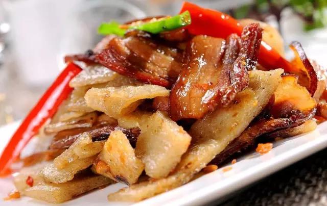 洋芋粑粑炒臘肉原是鎮(zhèn)坪老百姓桌上的家常小菜。是用洋芋制品和鎮(zhèn)坪特色臘肉合成的一道菜肴。新鮮的洋芋粑粑,配以鮮紅的五花臘肉,洋芋粑粑充分吸收了臘肉的油脂,顯的越發(fā)的飽滿晶瑩。再加入新鮮的本地辣椒,花椒,蒜片,蔥節(jié),姜片。用農(nóng)村燒柴禾的大鐵鍋煎炒,誘人的醇香散發(fā)著濃濃鄉(xiāng)情,紅黃白綠色澤鮮亮,臘肉肥而不膩,洋芋粑粑滑潤(rùn)爽口。