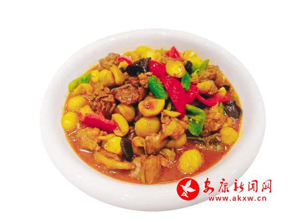 這道特色菜是把散養(yǎng)土雞洗凈剁成小塊,剝好板栗,在鍋里放菜籽油燒紅,加入少許干辣椒、花椒、豆豉炒香,再放入雞塊,大火煸炒變色,調(diào)入生抽、少許耗油、冰糖炒勻,汆入沒過雞塊的清水燒開,再放入板栗,火燜15—20分鐘,放入青紅椒調(diào)色,收汁裝盤。這道菜雞肉鮮美,板栗香甜,汁濃醇厚,色澤紅亮,真是吃貨們的口福。