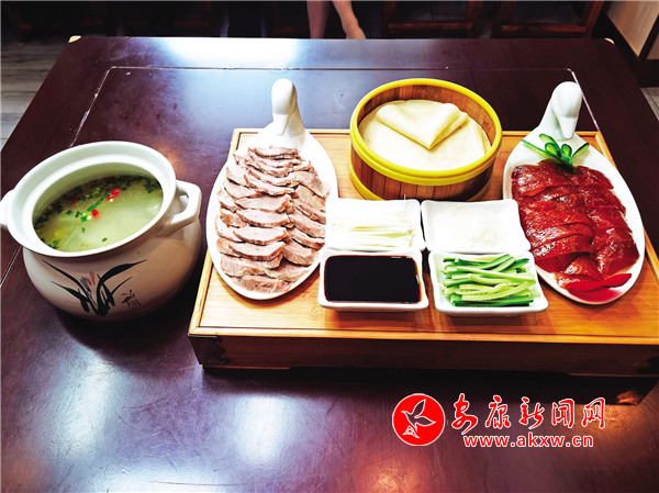 美味故事的烤鴨是我每次宴請(qǐng)親朋必點(diǎn)的一道菜,鴨子原材料用的是北京填鴨,具有填食時(shí)間短、育肥快、肥瘦分明、皮下脂肪厚、鮮嫩適度、不腥不酸等特點(diǎn),是制作烤鴨的上等原料,在制作方法上采取“明廚亮灶”方式,并根據(jù)陜南人的口味,搭配上各種秘制佐料,烤制黃亮,皮質(zhì)酥脆,肉質(zhì)細(xì)嫩,配上果醬、蔥絲、黃瓜絲卷餅,吃起來(lái)味道醇厚,肥而不膩,口舌生香是一道不可錯(cuò)過的舌尖美味。