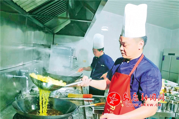 據(jù)悉,古川家園有標(biāo)準(zhǔn)客房8間,其餐飲既有地方特色的富硒農(nóng)家菜,又有挖掘整理出來的古莊園傳統(tǒng)菜。莊園金銀米飯就別具特色,該菜品以大米、玉米混合蒸熟后,加臘肉、酸蘿卜丁等炒制而成,大米、玉米鮮香與臘肉咸香融為一體,加蘿卜丁酸香爽脆,堪稱主食一流大餐。水煮土豆絲看似家常,卻很能體現(xiàn)紫陽餐飲文化的特色,廚師過硬的刀工,切出細(xì)而勻整的土豆絲,點睛之筆則是用泡制酸菜壇子的湯汁,這也是整個菜肴口味成敗的關(guān)鍵,土豆絲酸脆,湯汁酸辣適中。豬蹄燉玉米、四季豆,肉肥而不膩,湯色香味俱佳,也頗受歡迎。